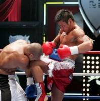 1R、ゴングと同時に前蹴りで突っ込む名城。そのまま一気にパンチで打ち合いに持って行き、左フックをクリーンヒットさせる。最初は面食らったかのような白虎も打ち合いに行くが、名城は前に出ながらの胴廻し回転蹴り。白虎はステップを使いながら回り込み、名城はパンチでどんどん前へ出て行く。白虎は首相撲で名城を転がす。突っ込んでいく名城に白虎の右フックがカウンターでヒット、その後の右ストレートで名城ダウン! 名城はそれでも前に出て打ちに行き、白虎も強気に打ち合う。左フックを連続でヒットさせ、組み付く名城にヒザ蹴りを入れる白虎。名城が右フックからの左ハイキック! 2R、ジャブで距離をとる白虎にパンチで前に出て行く名城。左ストレートからの右フックで今度は白虎がダウン! 左右のフックで足を止めて打ち合う両雄。白虎は組み付いて回復を待ち、名城はどんどんパンチで攻めていく。至近距離でフックを打ち合う! その打ち合いの中、右フックで名城が2度目のダウンを奪取。左右のフック連打で名城が白虎を滅多打ちにしたところで、レフェリーが割って入った。