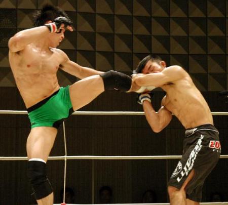 6月30日東京・北沢タウンホールにて、K’z FACTORY主催「プロフェッショナル修斗公式戦」が開催された。 メインイベントでは、CLASS-Bバンタム級戦として06年新人王の神酒龍一(GUTSMAN・修斗道場)と塙真一(パラエストラ小岩)が対決した。 1R開始早々、飛び膝を狙った塙に対し、神酒はタックルを合わせる。テイクダウンされバックにつかれた塙だったが、前から神酒の腕をキャッチしアームロック狙いにいく。 スタンドの展開に戻ると、神酒はワンツーから左ハイのコンビネーションで攻める。塙も打撃で応戦しヒザ蹴りを放つが、決定打はなし。 2R、タックルにきた神酒をがぶった塙はコツコツ鉄槌を落とす。打撃勝負となり、神酒の打撃のプレッシャーの前に、塙は後ろに下がるのみ。勢いに乗った神酒は右ミドル、ジャンピングミドル、ヒザ蹴りと一気に畳みにかかる。 ロープ際に追い詰められた塙は胴タックルに行くも、神酒はうまくリング脇に足をひっかけテイクダウンを許さない。やっとの思いで塙はテイクダウンし上からパウンドを落としたが時間切れ。主導権を握り続けた神酒が判定で勝利。これで公式戦3連勝となった。